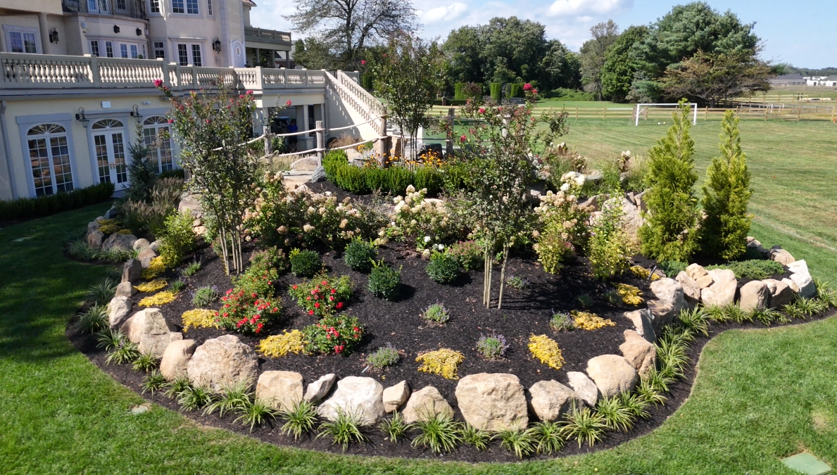 Aquatic Artists crafted this multi-tiered natural stone waterfall with a stream that flows into this gunite pool in Flemington, NJ. The waterfall was built into a hill and it is 4 feet high. Also, we built a boulder retaining wall on the left of the waterfall and we installed stone veneer at the tile line of the pool under the waterfall. In addition, we installed a sitting rock and accent rocks on either side of the sun shelf. Lastly, planting beds were placed within this water feature to enhance the natural look.
